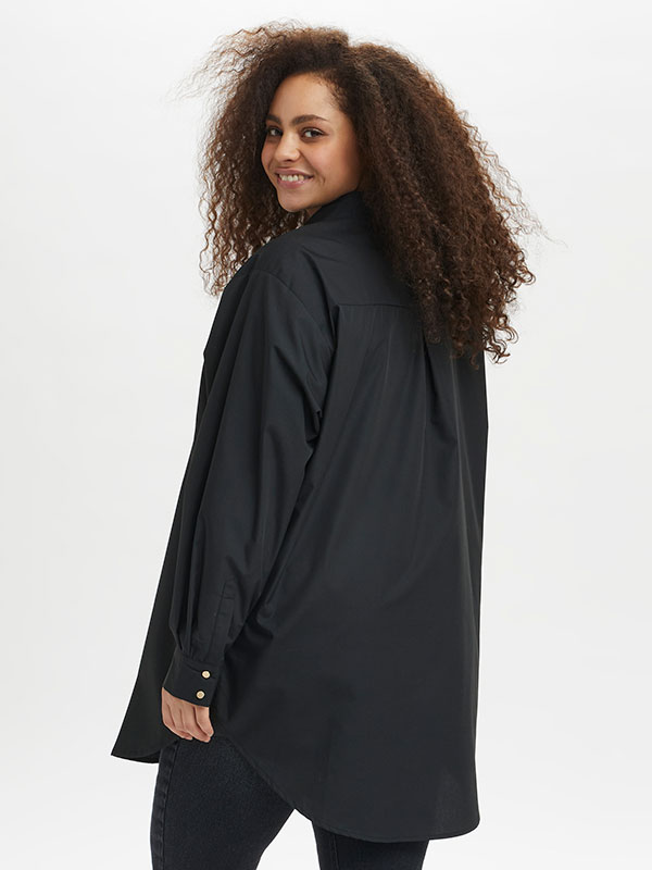 Utforsk den elegante sort skjorten fra Kaffe Curve