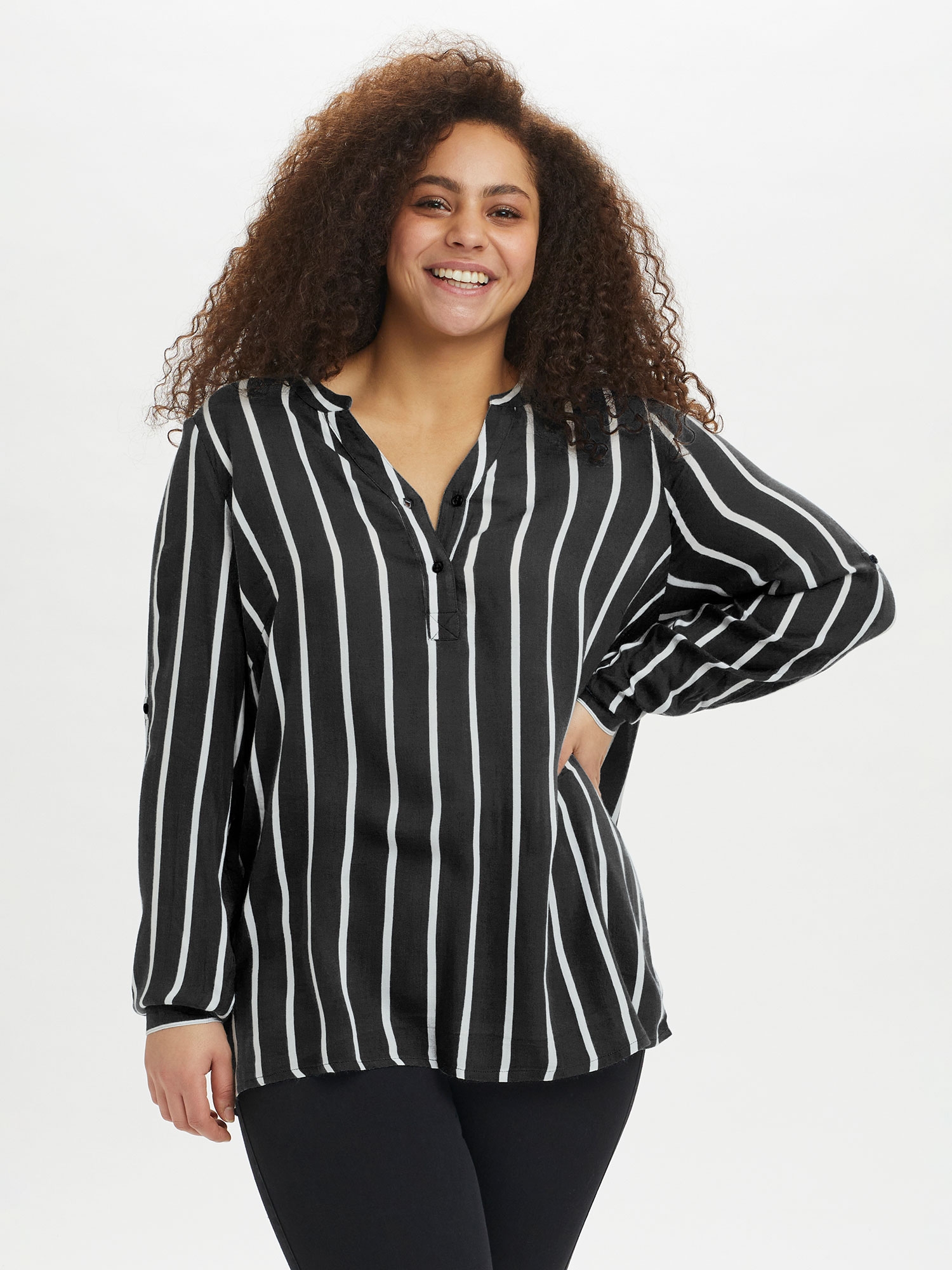 100% Bærekraftig Viskose, V Hals., knapper, Avrundet Bunn