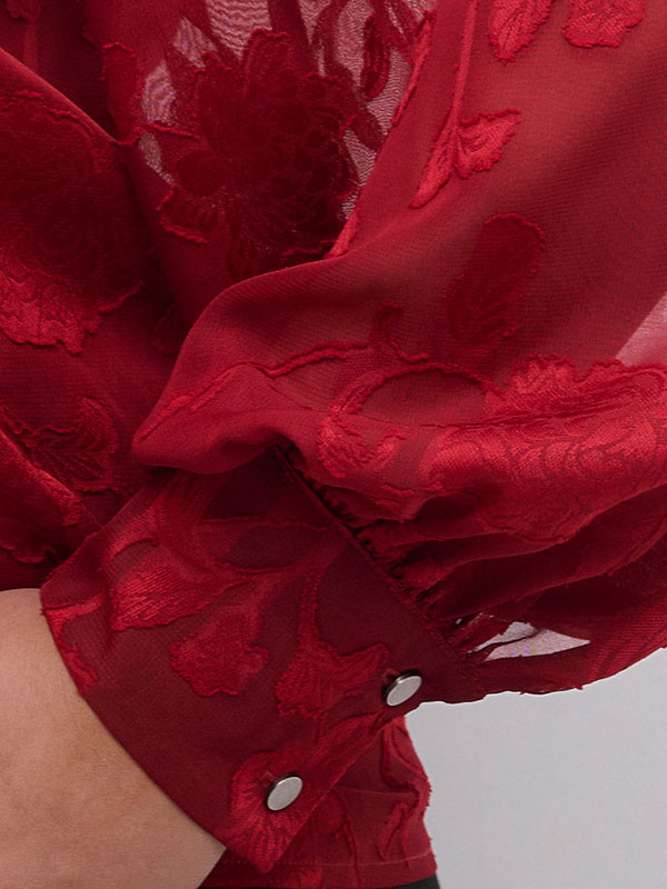 Denne vakre blusen fra Kaffe Curve i fargen Bordeaux er det perfekte valget for enhver anledning. Med sitt delikate mønster av røde blomster gir den et friskt og feminint uttrykk. Blusens design er spesielt tilpasset for å fremheve figuren på en flatterende måte, noe som gjør den ideell for store størrelser.