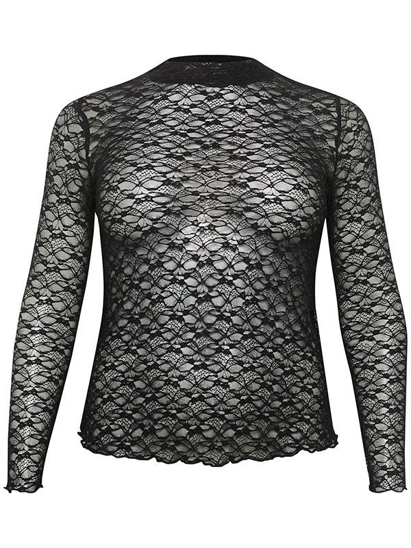 La deg forføre av den sofistikerte sjarmen til KCjolina blusen fra Kaffe Curve. Denne blusen i sort farge er designet spesielt for plus size og kombinerer komfort med stil. Med sitt delikate blondestoff og A-linjeform, tilbyr den en flatterende passform som fremhever dine kurver på en elegant måte. Den høye, runde halsen og de lange ermene tilfører en klassisk touch, mens stretchmaterialet sikrer en behagelig følelse gjennom hele dagen.