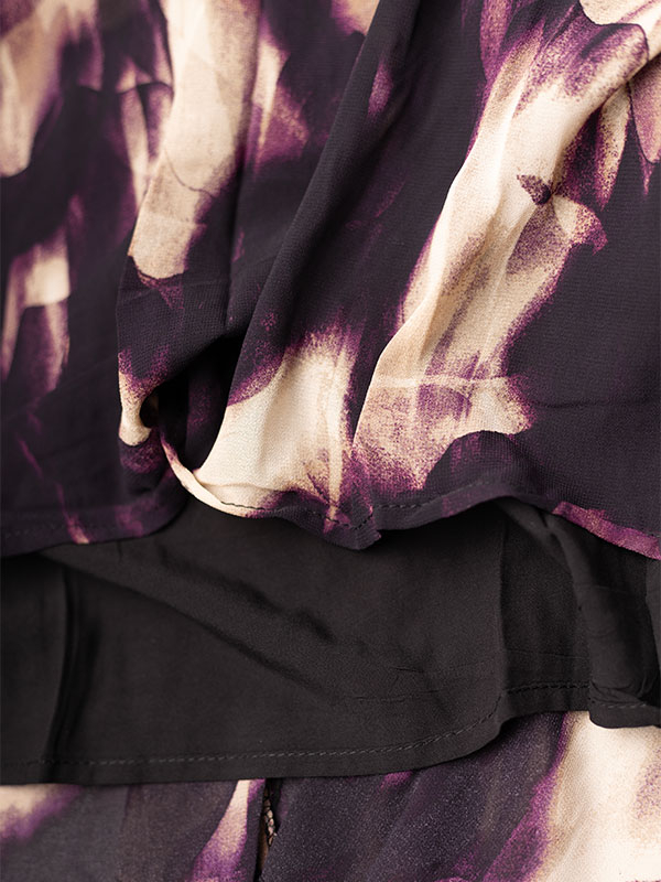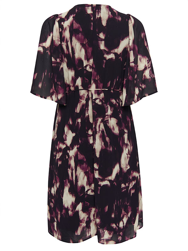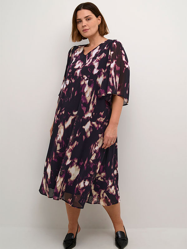 Denne flotte kjolen fra Kaffe Curve er et must i enhver garderobe for den motebevisste med sans for stil og komfort. KCnour kjolen, med sitt iøynefallende mønster i nydelige fargetoner av lilla og hvitt, er perfekt for både hverdags og spesielle anledninger. Den luftige chiffonen sammen med et behagelig viskosefôr sikrer en flatterende passform for alle kroppsfasonger.