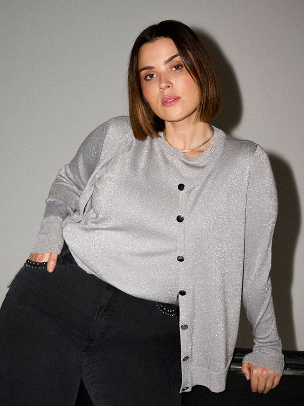 Oppdag den nye sølvfargede Cardigan fra Kaffe Curve