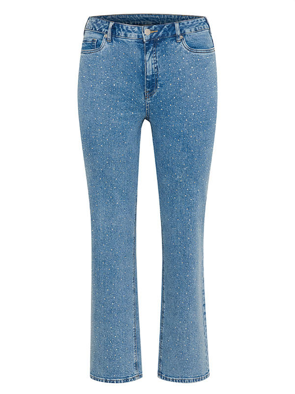 La deg forføre av den fantastiske passformen og den behagelige følelsen av KCthura jeansene fra Kaffe Curve. Disse jeansene er laget med 98% bomull og 2% elastan, noe som gir en perfekt kombinasjon av komfort og fleksibilitet. Med et klassisk snitt og rette ben, er de ideelle for hverdagsbruk. Den sjarmerende blå fargen og diskrete rhinestones gir et unikt preg som lyser opp din garderobe.