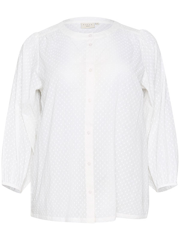 Denne elegante blusen fra Kaffe Curve er et must i enhver garderobe. Med sitt 100% bomullsmateriale tilbyr den både komfort og stil for den moderne kvinne. Blusen har en løs passform som er flatterende for alle kroppstyper, og de puffete ermene sammen med elastiske mansjetter tilfører et moderne preg på et klassisk design.