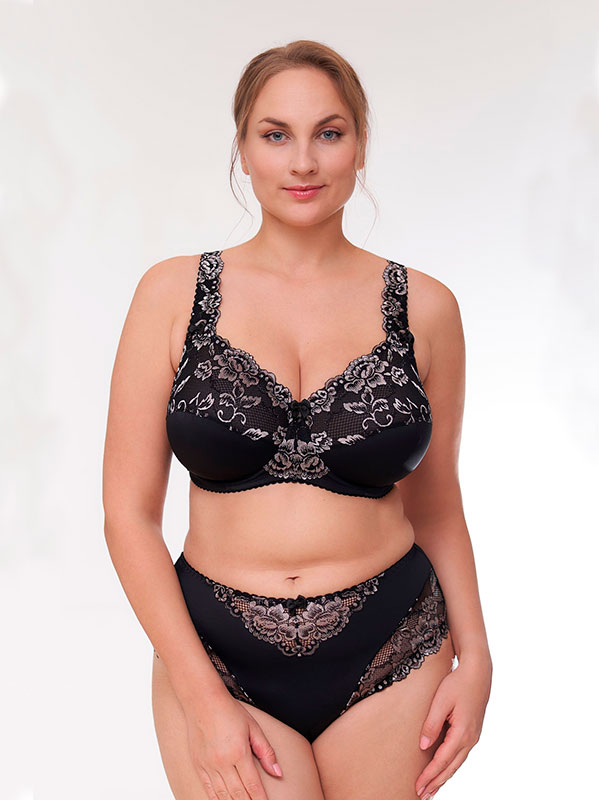 Fantastsik flot sot sort blonde bh, der både er komfortabel, og som giver god støtte til den store barm.