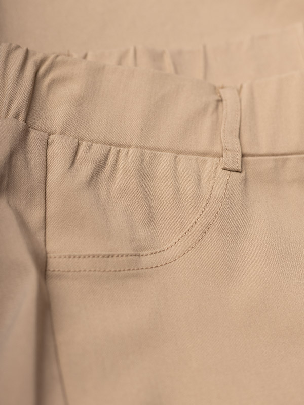 Utforsk komforten med disse stilige buksene fra Sandgaard i en delikat beige farge. Designet med en elastisk midje og beltehemper, tilbyr disse buksene både stil og funksjonalitet for hverdagsbruk. Den myke blandingen av viskose, nylon og elastan sikrer en behagelig passform som beveger seg med deg.