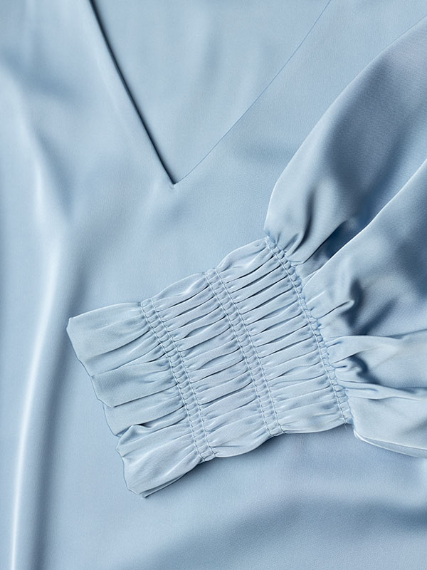 Denne vakre blå blusen fra Kaffe Curve er perfekt for enhver anledning. Med sin løse passform og A-linjeform gir den en flatterende silhuett for plus size. Blusen har lange ermer med en smidig elastisk rynking ved ermene, som tilfører et moderne preg til det klassiske designet.