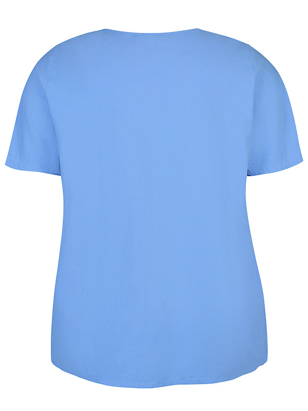 Denne vakre blå T-skjorten fra Zhenzi er perfekt for enhver anledning. Laget av 100% bomull, tilbyr den både komfort og stil for den bevisste kvinne. Med en løs passform og A-linjeform, er denne T-skjorten flatterende for alle kroppstyper.