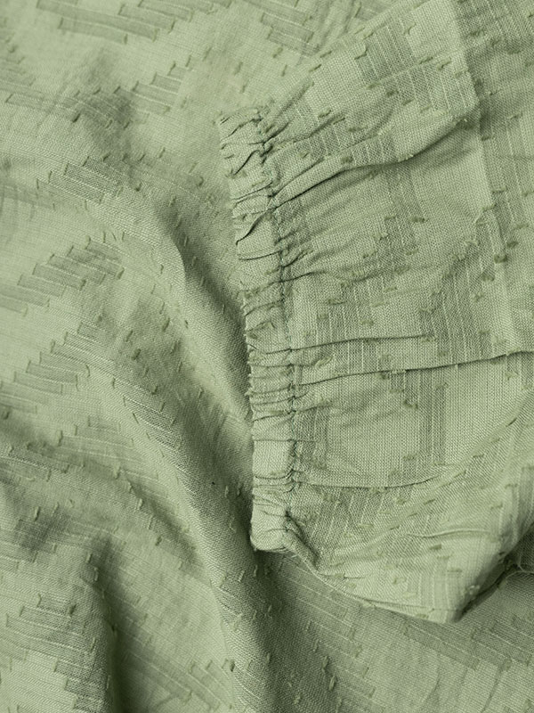 Detaljene i KCvitana blusen gjør den unik, fra den sjarmerende V-halsen til de elegante 3/4 ermene. Det subtile bølgemønsteret og den friske grønne fargen legger til et moderne preg som enkelt kan matches med ulike bukser og strømpebukser i store størrelser. Denne blusen er ikke bare stilig, men også praktisk og lett å vedlikeholde, noe som gjør den til en favoritt i enhver garderobe.