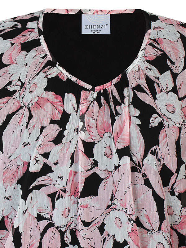 Denne blusen er ikke bare behagelig, men også utrolig stilig med sitt lyserøde blomstermønster som gir et friskt pust til garderoben. Den er ideell for store størrelser og kan enkelt kombineres med både jeans og skjørt for et variert utseende. La deg forføre av den myke viskosen og den elegante designen som passer perfekt til både hverdags og fest.
