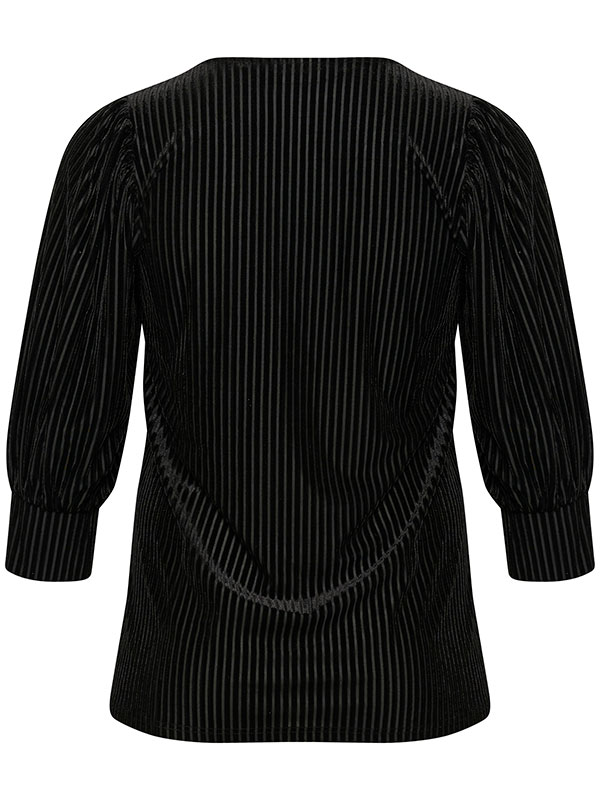 Blusen er designet med 3/4 ermer, ideell for både varmere og kjøligere dager. Den subtile stripete mønsteret tilfører en ekstra dimensjon til designet, noe som gjør den både unik og tiltalende. Utforsk flere bluser i store størrelser hos Curvii for å finne din nye favoritt.