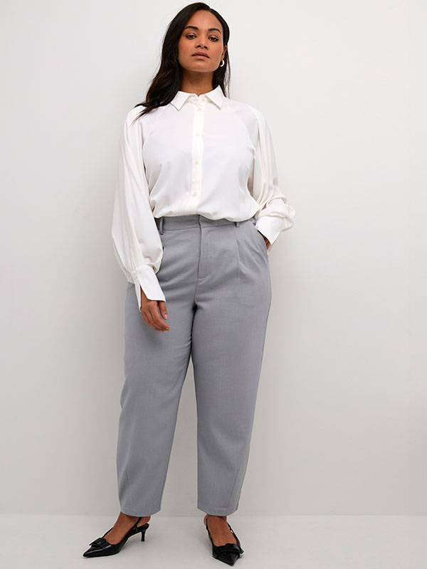Utforsk komfort og stil med KCmerla buksene fra Kaffe Curve, perfekt for enhver anledning. Disse buksene i en nøytral grå farge tilbyr en flatterende passform for plus size, og er designet for å gi både komfort og eleganse. Med en myk viskoseblanding, gir de fleksibilitet og bevegelsesfrihet gjennom hele dagen.