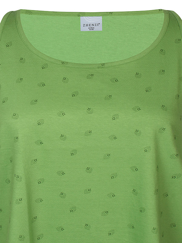 Denne herlige Zhenzi-toppen i strålende grønn farge er perfekt for en avslappet og stilfull hverdag. Laget av 100% bomull, tilbyr den både pusteevne og komfort. Med sitt løstsittende snitt og runde hals, er denne toppen ideell for de som verdsetter komfort og stil i store størrelser.