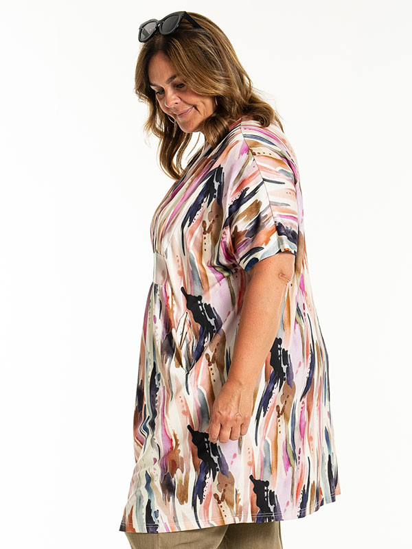 Utforsk den nydelige Belina-kjolen fra Gozzip, perfekt for enhver anledning. Denne kjolen er laget av myk viskosejersey og har en lett tilpasset, løs passform som gir både komfort og stil. Med sitt fargerike mønster og elegante V-hals, er Belina-kjolen et flott tillegg til garderoben din.