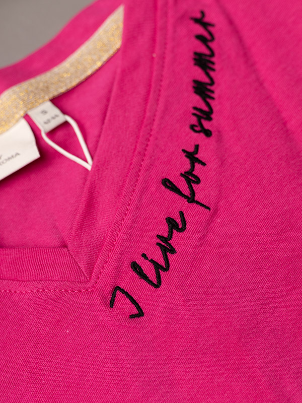 Med en elegant V-hals og korte ermer, er denne T-skjorten ideell for både hverdags og spesielle anledninger. Den levende rosa fargen legger til et friskt pust i din daglige stil. Se vårt utvalg av T-shirts i store størrelser for å finne flere must-haves for din garderobe.