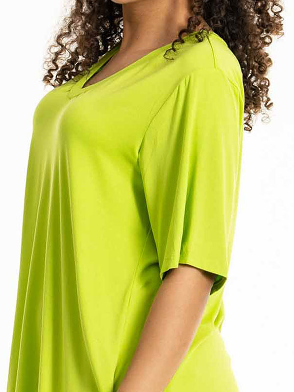 Viscose Jersey., Korte Ermer, Avrundet Bunn, V-hals, A-fasong