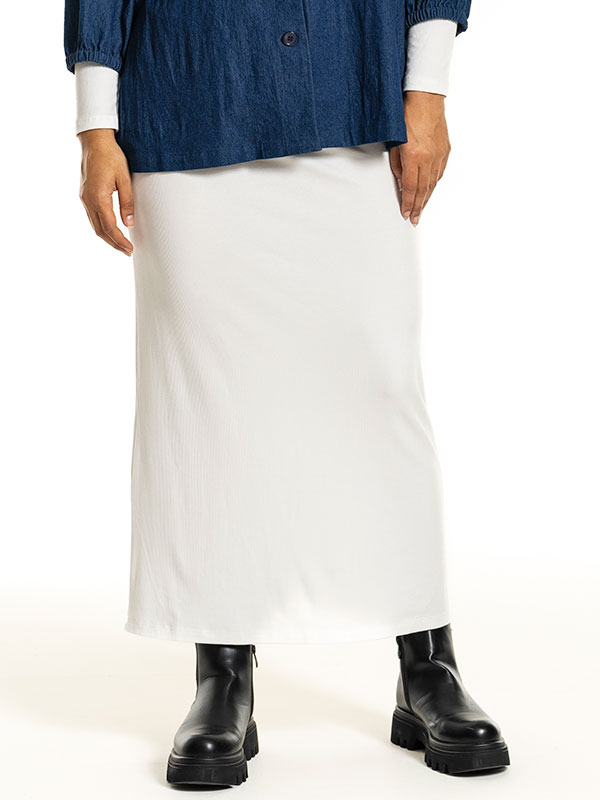 Enten du skal på kontoret eller en avslappende helg hjemme, vil denne nederdelen fra Studio være et yndet valg. Den delikate råhvide fargen og det subtile ribbemønsteret legger til et snev av raffinement til din garderobe. Se vårt utvalg av store størrelser skjørt for flere stiler som komplimenterer enhver figur.
