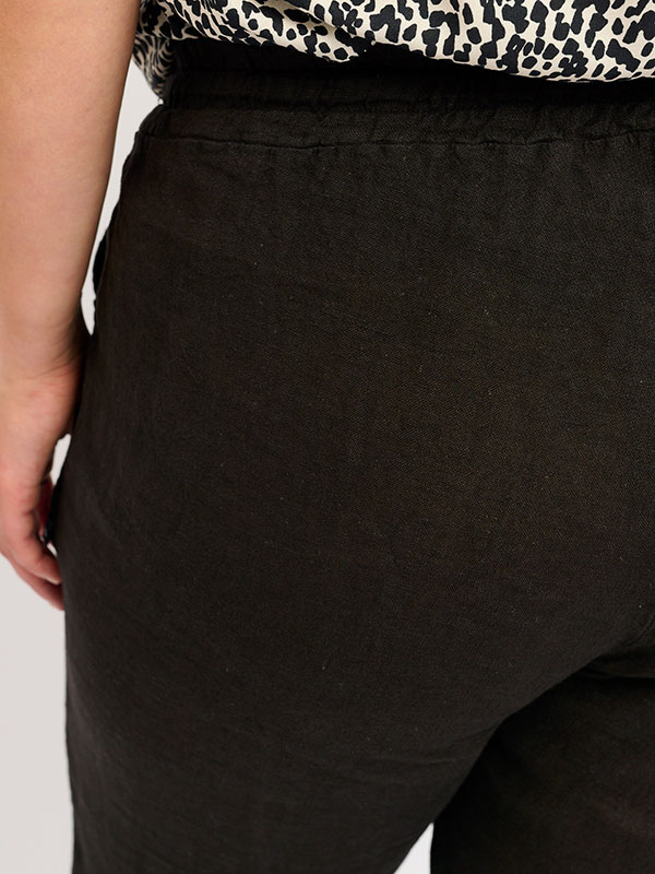 Utforsk komforten med disse elegante bukser i store størrelser fra Adia. Laget av 100% lin, tilbyr disse buksene en lett og pustende følelse som er perfekt for både hverdagsbruk og spesielle anledninger. Med rette ben og en praktisk elastisk midje med snøring, sikrer de en flatterende passform for alle kroppsfasonger.
