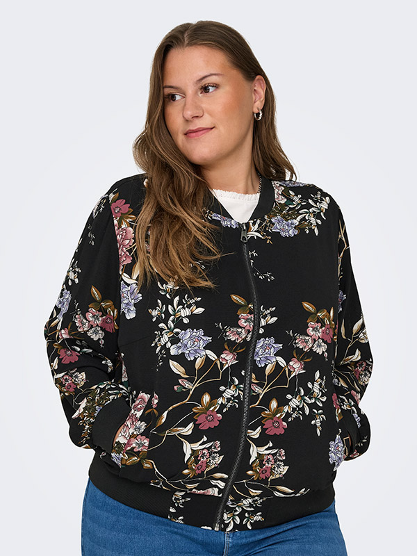 Denne elegante jakken fra Only Carmakoma er et must for enhver garderobe. Med sitt livlige blomstermønster på sort bakgrunn tilbyr den en perfekt blanding av komfort og stil. Jakken er designet med en praktisk glidelås, ribbede mansjetter og en behagelig rund hals, noe som gjør den ideell for både hverdagsbruk og spesielle anledninger.