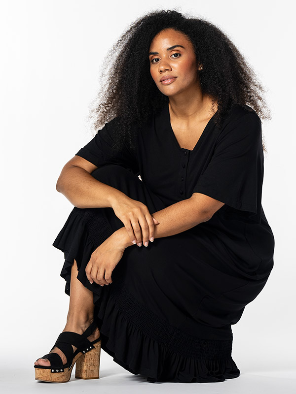 Enten det er en dag på kontoret eller en avslappende helg hjemme, vil denne kjolen fra Studio sørge for at du ser flott ut uten å gå på kompromiss med komforten. Den er ideell for store størrelser, og tilbyr en flatterende passform for alle kroppsfasonger. Kombiner den med dine favorittsandaler for et komplett og stilig antrekk.