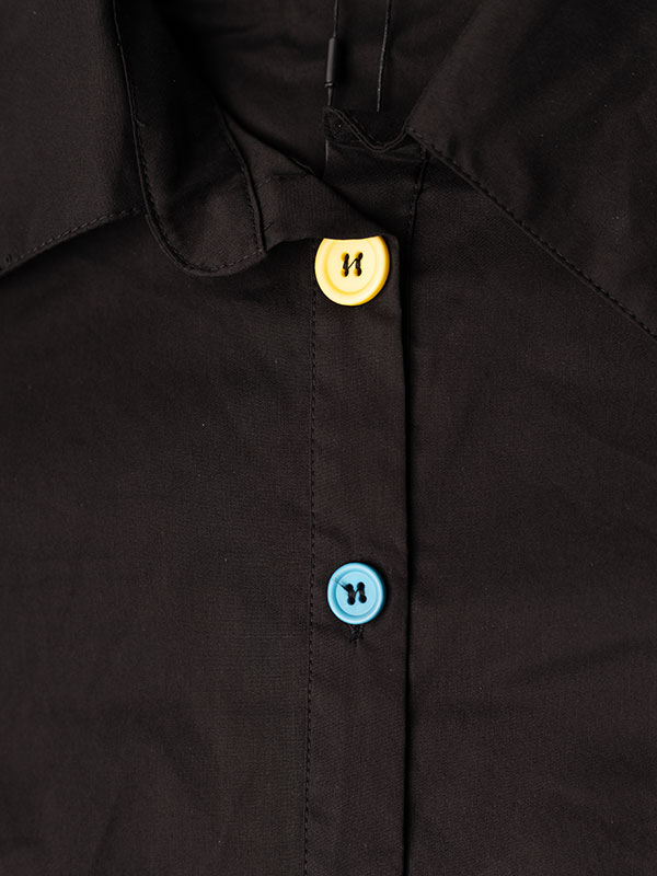 Laget av en behagelig bomullsblanding, sikrer denne skjorten både stil og komfort gjennom hele dagen. Den tidløse sorte fargen og de diskrete detaljene, som de fargerike knappene, gjør den lett å kombinere med andre plagg. Utforsk flere skjorter i store størrelser hos Curvii for å utvide din garderobe med kvalitetsplagg som fremhever din stil.